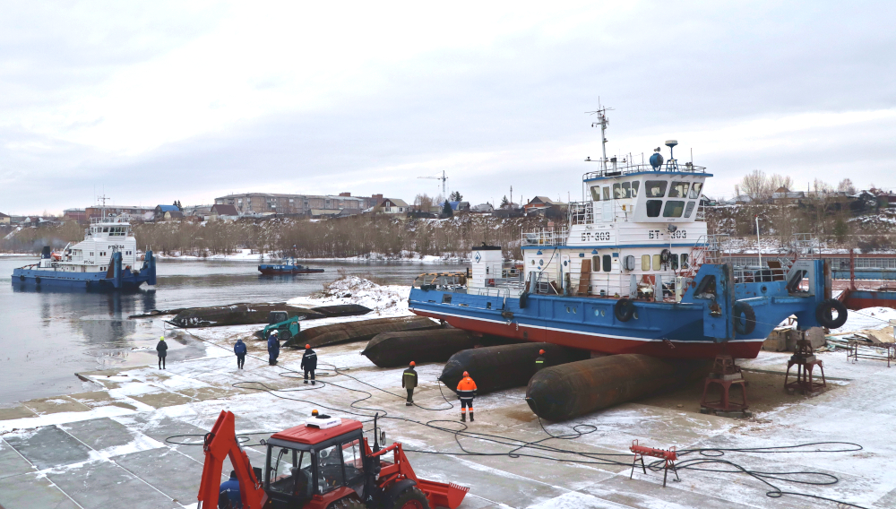 Аналогичный пневматический судоподъемный комплекс оборудован и в Березовской ремонтно-механической мастерской. На нем могут одновременно ремонтироваться до 10 судов.
