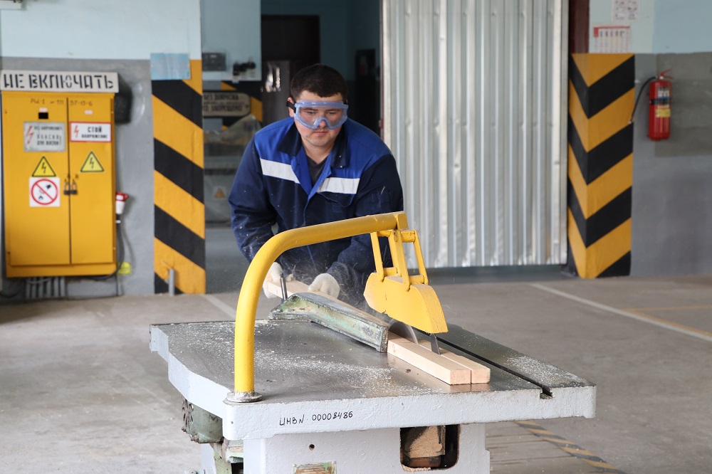- Деревообрабатывающий участок, где изготавливают привальный брус для нефтеналивных барж, внутреннюю обшивку судовых помещений и мебель для судов.